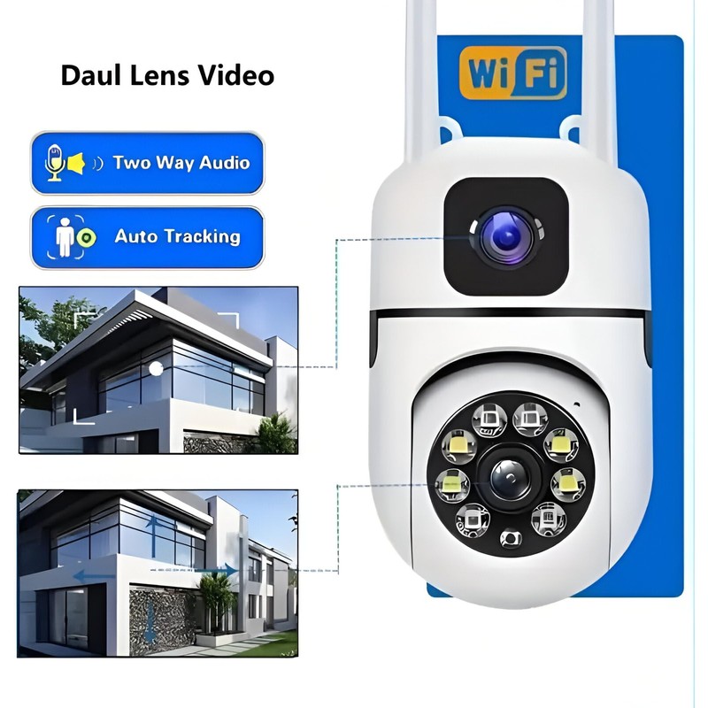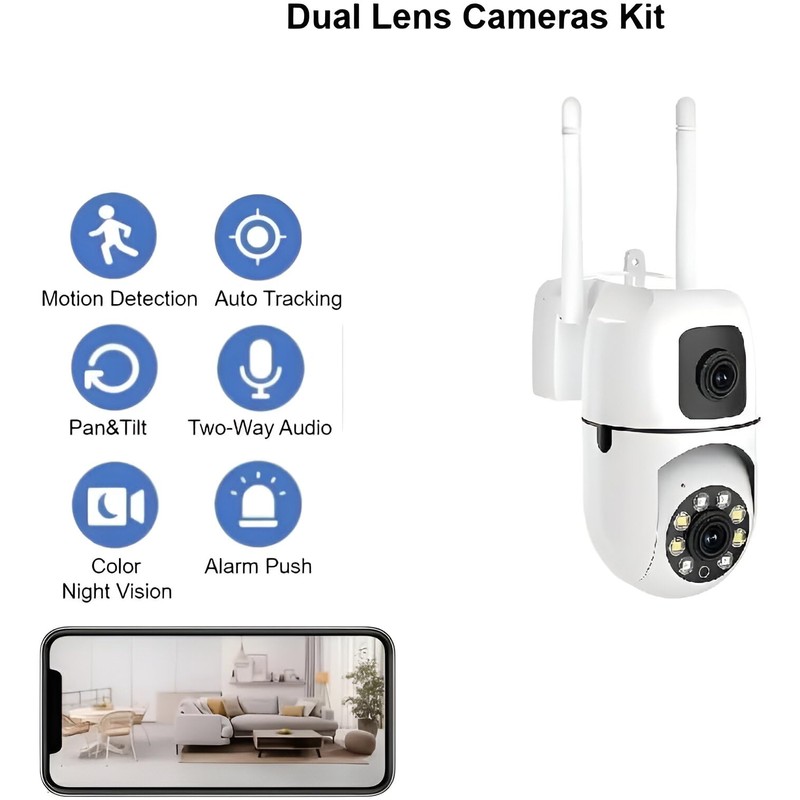 Camera Home Security, Outdoor Camera Dual Lens, WiFi Human Detection, HD Night Vision, 2-Way Talk, Indoor/Outdoor Camera, Dual Screen App Control, for Home Yard Store, Surveillance Wireless Camera (2)