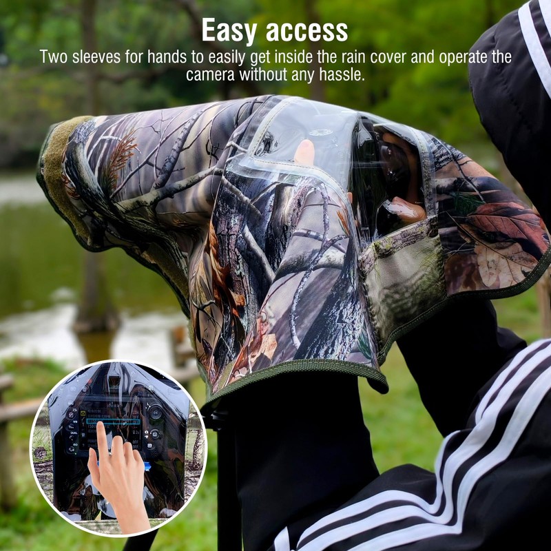 Camera Rain Cover with Openable Viewing Window & Strap Mountable Design,Waterproof Camera Raincoat Sleeve Protector(L)