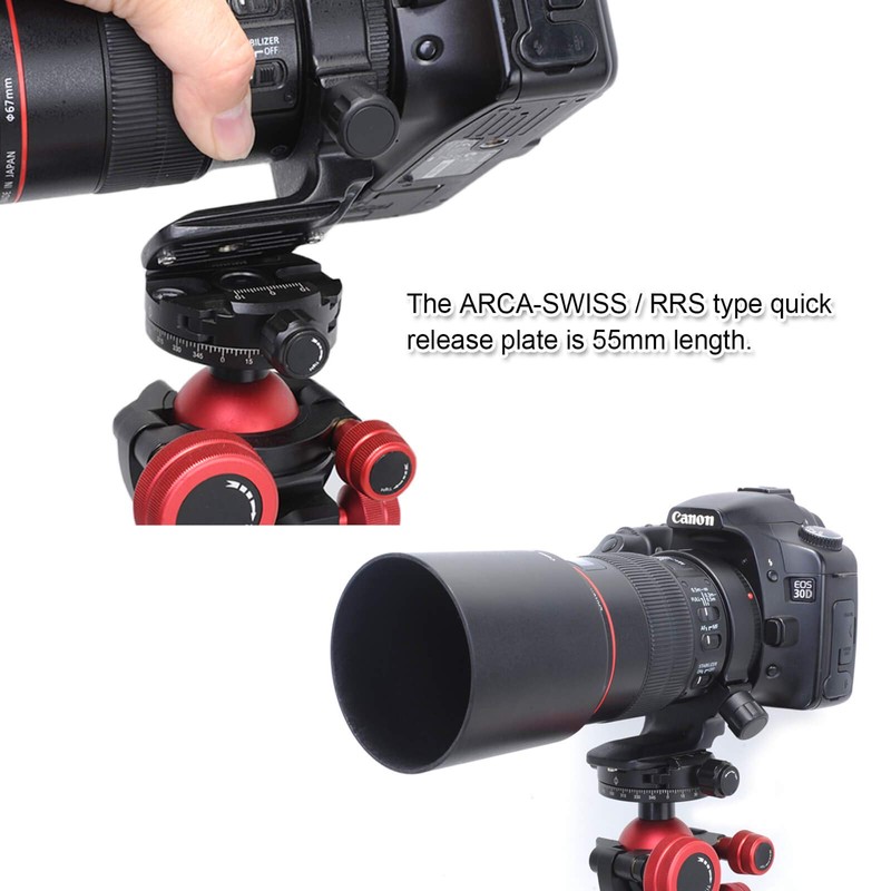 3. The bottom of the lens tripod collar has a 55mm Arca Fit Quick Release Plate feature, which can be used directly with 39mm Arca-Swiss Fit tripod ball head, panoramic head and clamp. More practical than other tripod rings without quick release plates. We also reserve a 1/4" screw hole for securing the lens directly to the tripod and stainless steel anti-skid screw.