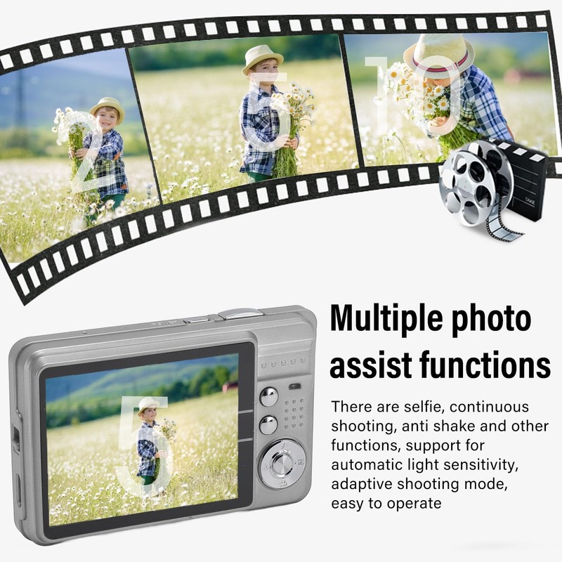 - Various Photography Assist Functions: With built in fill light that can be toggled to shoot great photos even in dark locations, the camera offers selfie, burst, and anti shake functions, supporting automatic light sensitive and adaptive modes for easy operation, just press the shutter button to record the moment.
