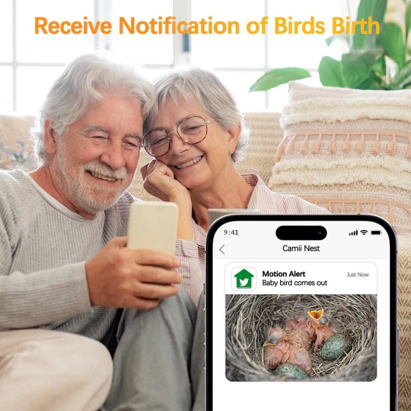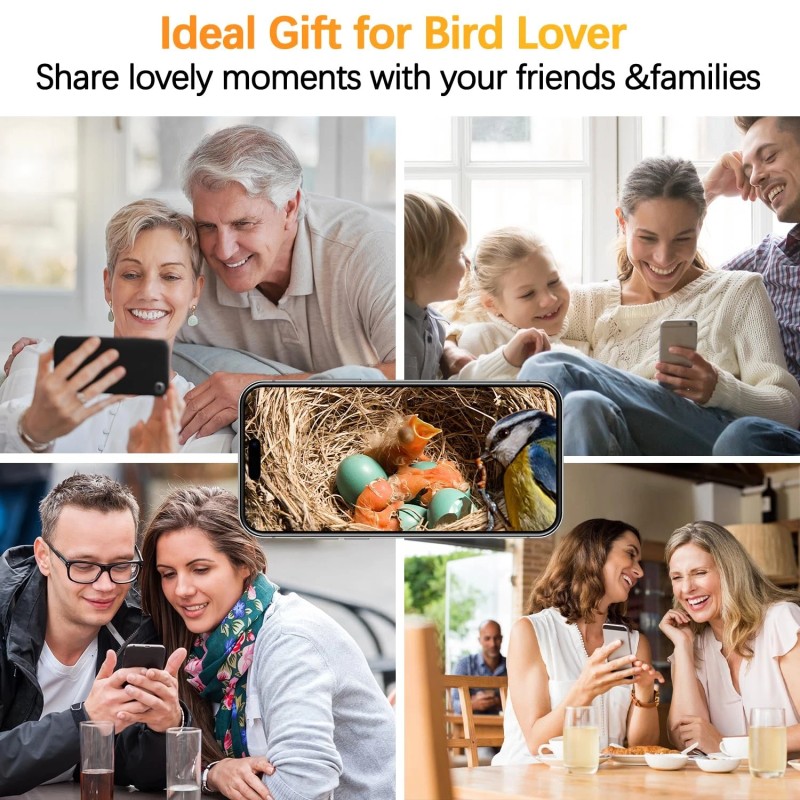 【Watch Bird Nesting & Hatching in Real Time】The bird house camera features motion detection and captures every feathered friends. It also can sends real-time notifications to your phone, so you could watch bird nesting & hatching anytime and anywhere via the phone app, without letting you miss any precious moments of birds. With our smart bird house, you'll get a new perspective on nature.