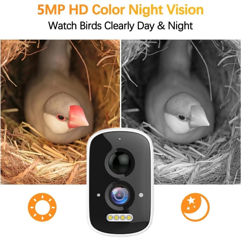 【5MP Color Night Vision & 110° Adjustable Angle,】With its advanced 5MP HD, Camii smart bird house camera gives you a clear view of various visiting birds both day and night. What's more, it only supports 2.4ghz Wi-Fi connection. 110° adjustable camera that allows the user to set the optimal viewing angle.