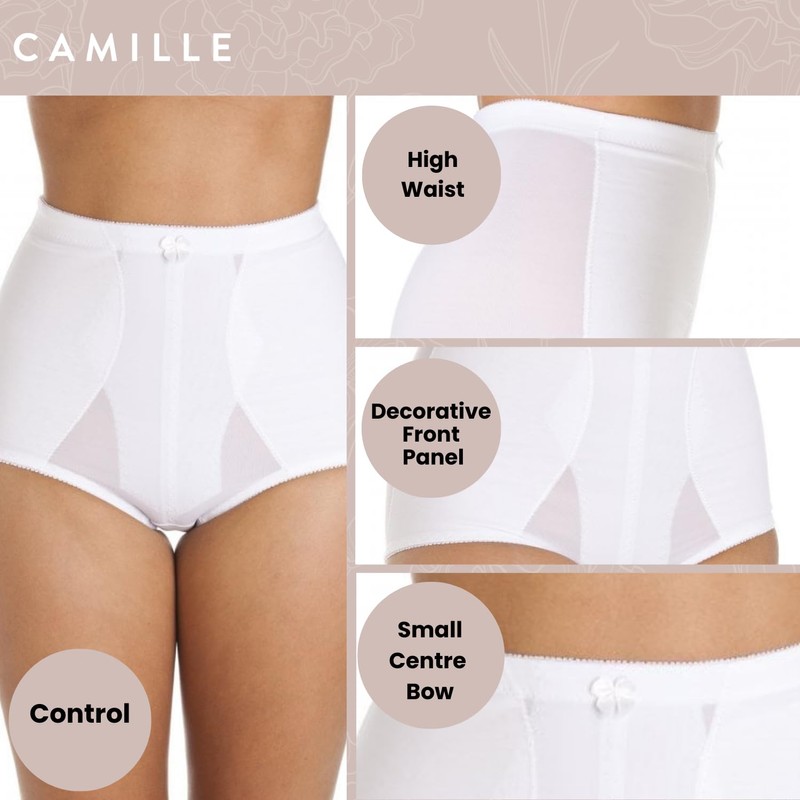 Camille Womens Bella Magic Firm Control Two Pack Shapewear Support Slimming Briefs 18 White