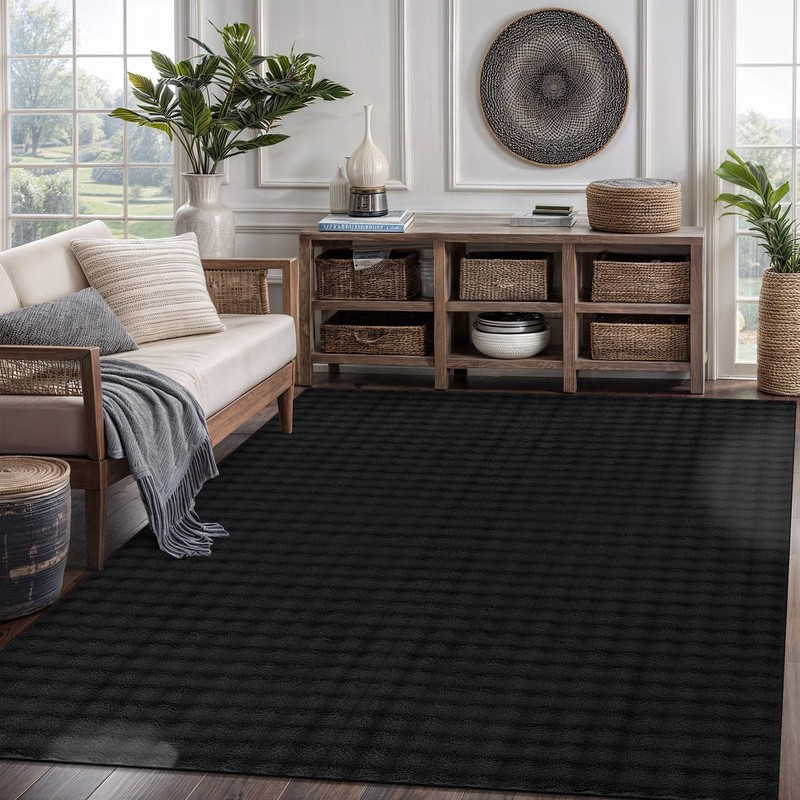 CAMILSON Plush Area Rug 8x10 Modern Fluffy Shag Shaggy Ultra Soft Bedside Rugs Non Slip High Pile Easy to Clean Durable Living Room Bedroom Kids Room Indoor Carpet (8 x 10 Black)
