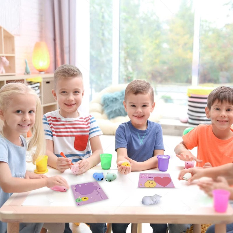 - Easy to Use: Each card has a heart-shaped position matching Mochi Squishys. Just glue the matching dots to each valentines day card, then attach a toy and write the name or message on the back. Each Mochi Squishies toy comes in their vivid variety of colors.
