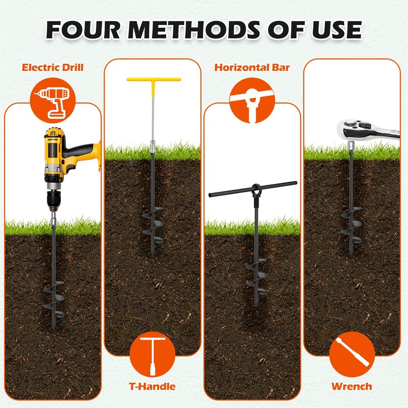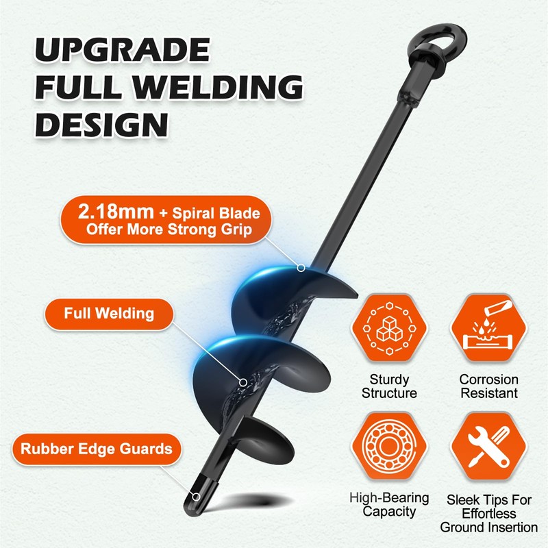 - Quick & Secure Installation:Install easily with included T-handle wrench (soft soil) or impact drill (firm soil). Sharp-tip spiral design with detachable eyelets ensures smooth penetration in soil, sand and grass. For best results, lightly moisten dry soil before installation