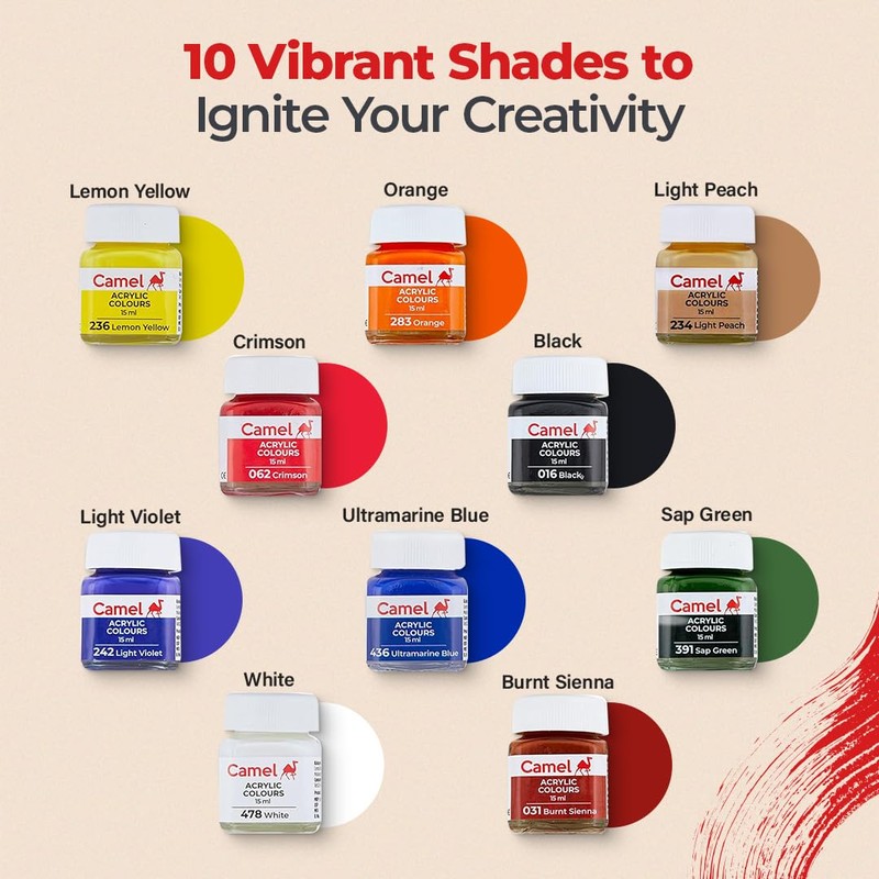 Camlin Kokuyo Fabrica Acrylic Ultra Color - 15ml Each, 10 Shades