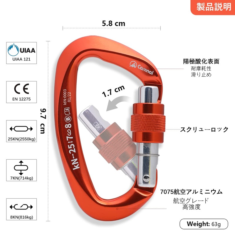 - CAMNAL Heavy Duty Carabiner UIAA Certified Locking Carabiner 25KN (about 5620lbs) Screw Lock Carabiner Professional D Shape Rock Climbing Carabiner Clip for Climbing, Climbing, Aerial Work