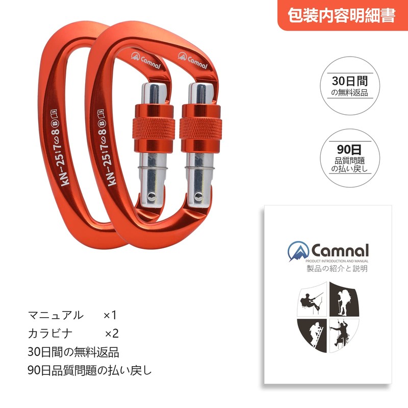 CAMNAL Carabiner, Climbing, UIAA and CE Certified Professional Climbing Carabiner, 25 KN (Approx. 5500 kg), Screw Lock, D-Clamp, Climbers, Climbers, High Altitude Workers