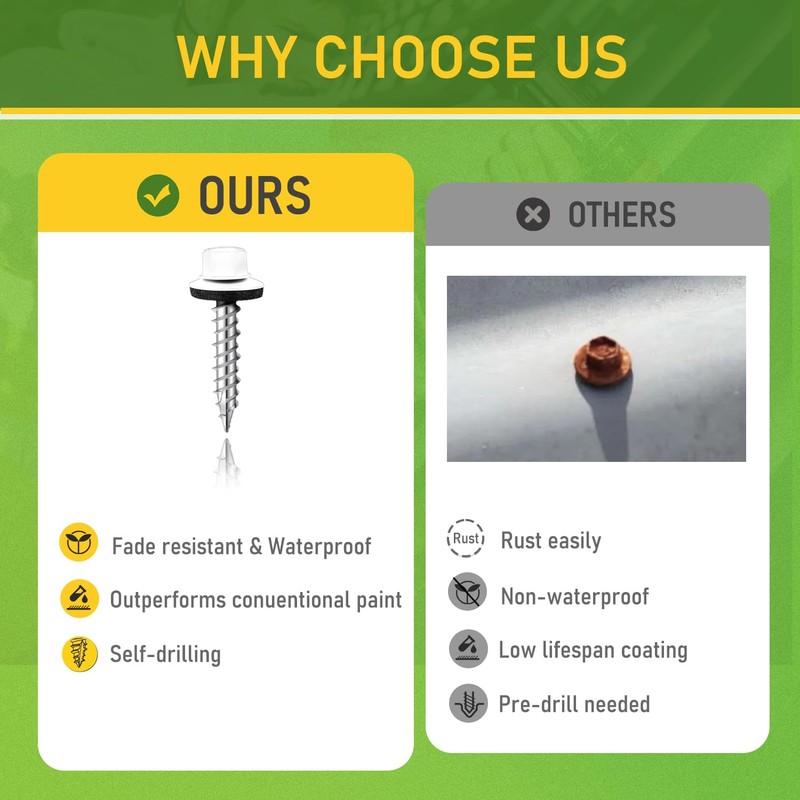 - 【 Premium Qualiity 】 - These roof screws are made of 1022A carbon steel, which is known for its reliability and strength. It is harder and less likely to break during operation. You can trust these screws to secure your roof.