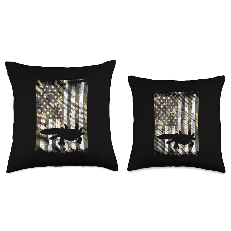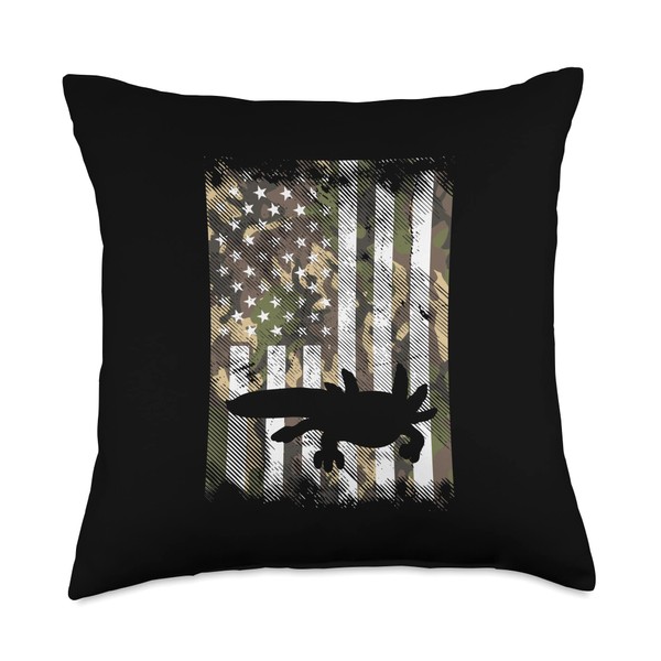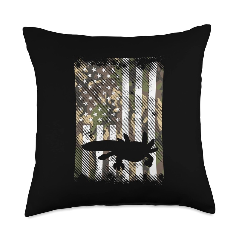 Camo American US Flag Axolotl Silhouette Vintage Patriotic Throw Pillow