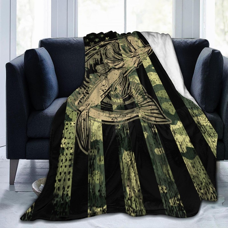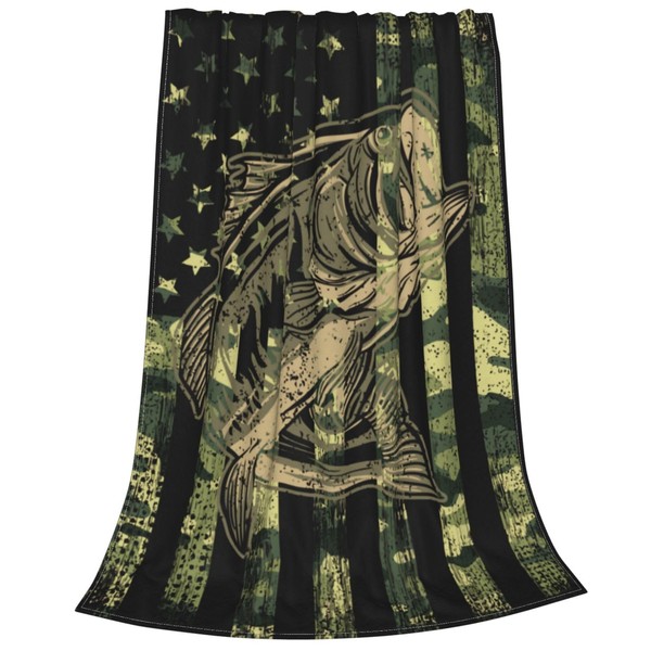 Camo Fish Fleece Throw Blanket Soft Flannel Plush Lightweight Warm Cozy Blanket for Men Women Couch Bed Sofa Travel 60"x80"