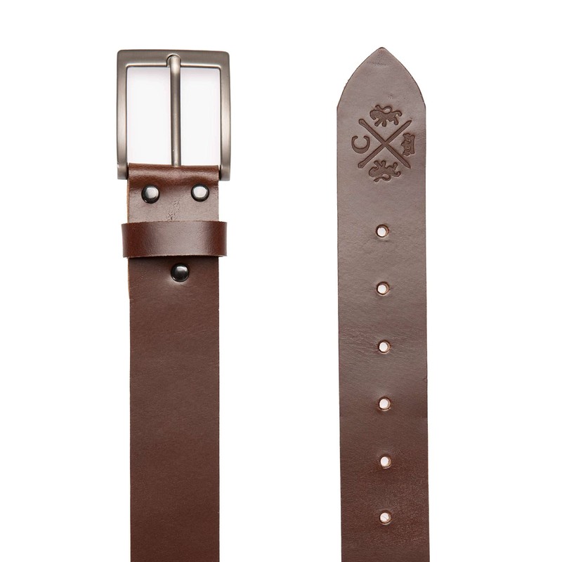 Camp David Men's Leather Belt with Matt Pin Buckle, brown