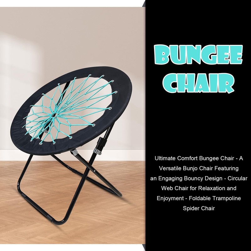 Camp Field Camping and Room Bungee Folding Dish Chair -Versatile Bunjo Chair with Fun Bouncy Design - Circle Web Chair for Relaxation and Fun for Room Garden and Outdoor (Small Black)