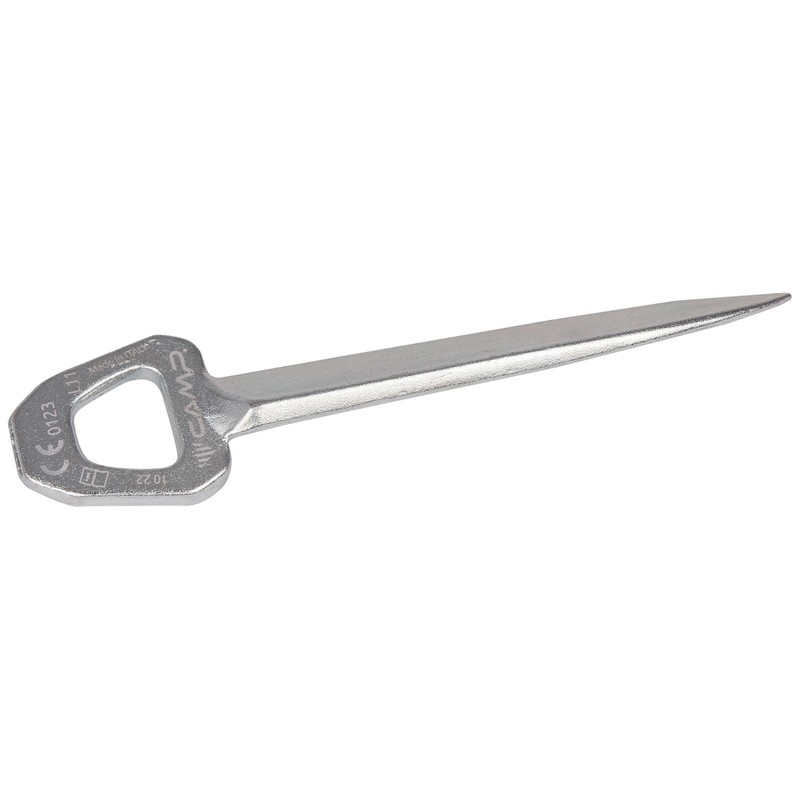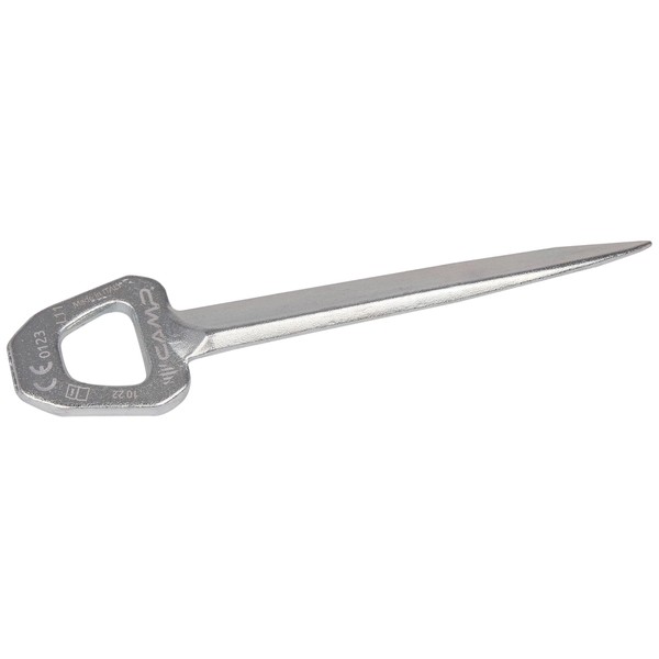 The pointed wedge shape of the Universal piton fits the most common cracks. A 45 degree angled head applies torque to maximize holding power for both vertical and horizontal placements. The soft carbon steel can mold and press more easily into fissures without damaging the rock making soft pitons the right choice for brittle rock like limestone.