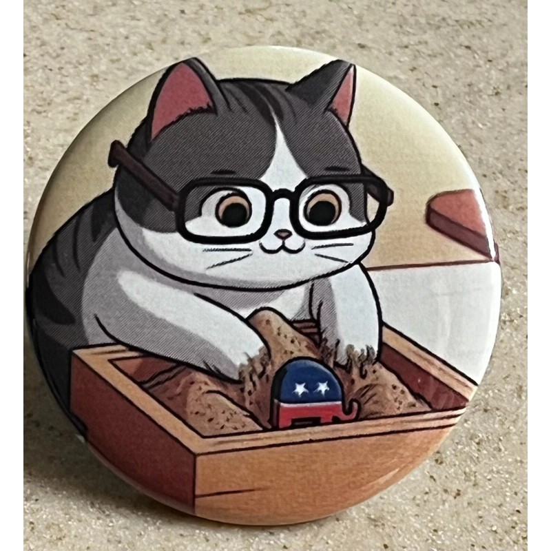 Campaign Pin-Back, 2 1/4 inch ,Cat Burying Republican Party in Litterbox