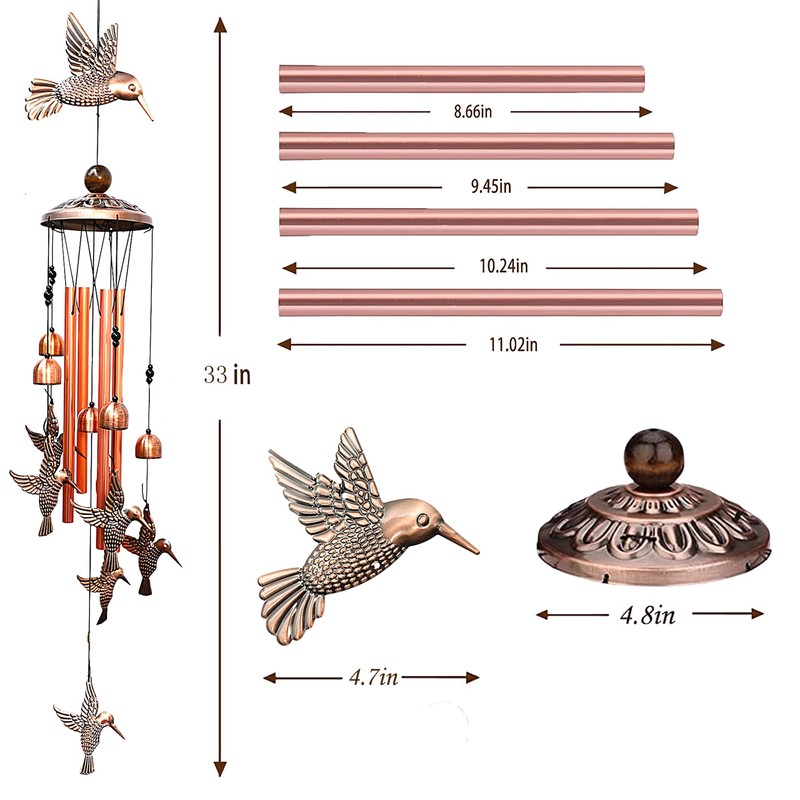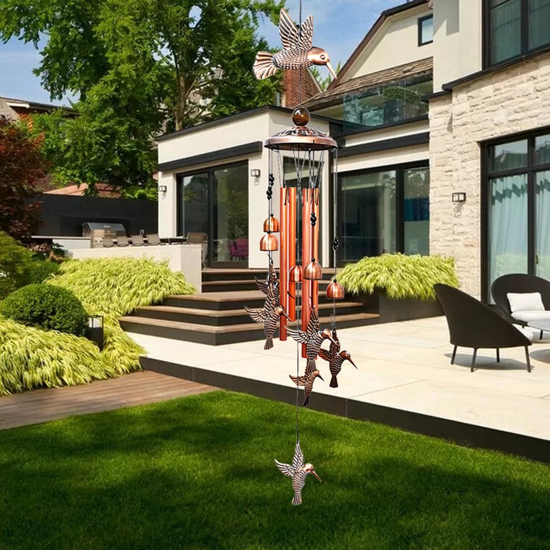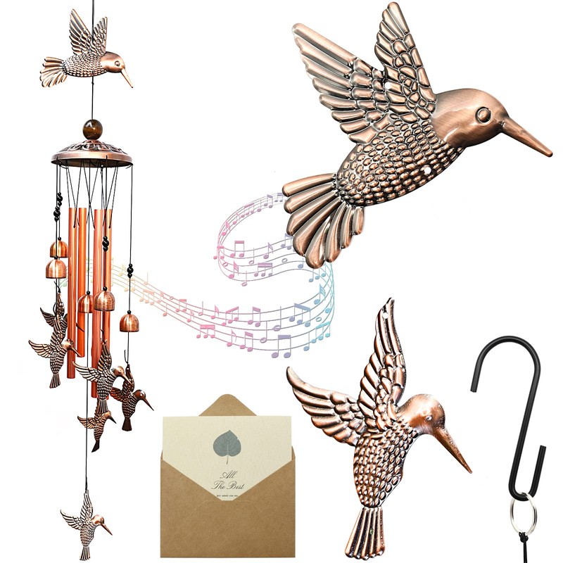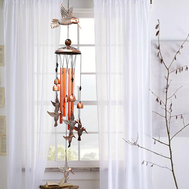 • Tonos MELODIOSOS: cada tubo de metal de nuestras campanillas de viento produce un tono único y agradable cuando se golpea por la brisa. Las suaves armonías creadas por las campanillas de colibrí traerán una sensación de tranquilidad y paz a tu entorno.