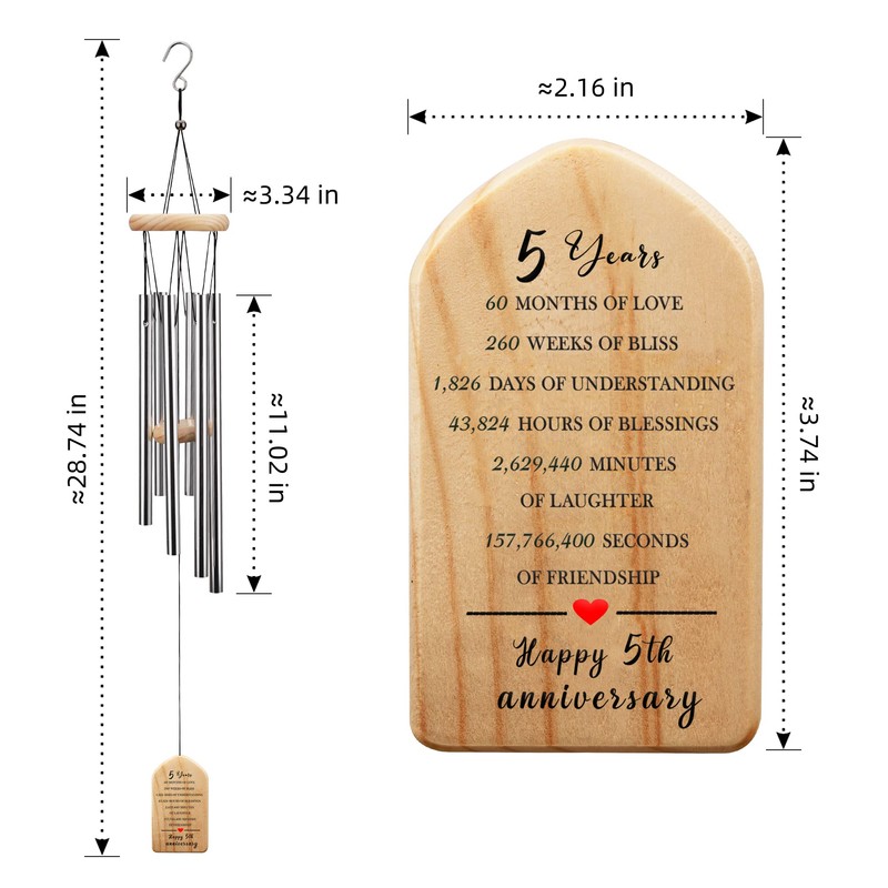 - Feliz regalo de aniversario de 5 años: es una buena manera de celebrar tu aniversario con esta hermosa campanilla de viento de aniversario. Este regalo de aniversario para hombres o ella hará que tu destinatario brille de agradecimiento.