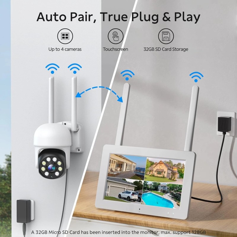 Campark Wireless CCTV Security Camera System W/7"Touch Monitor WiFi NVR & 2-PTZ Cam-Kits