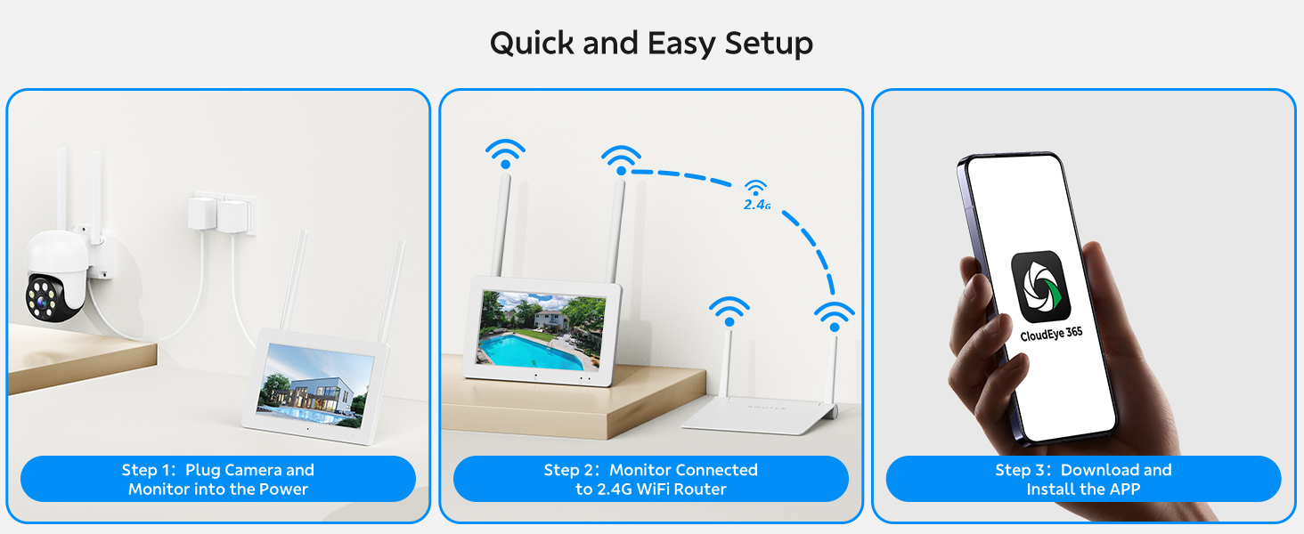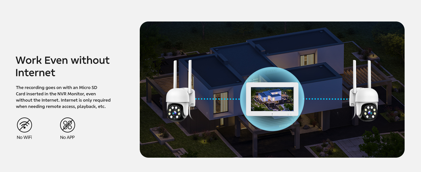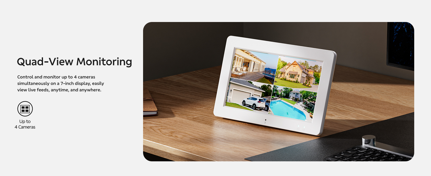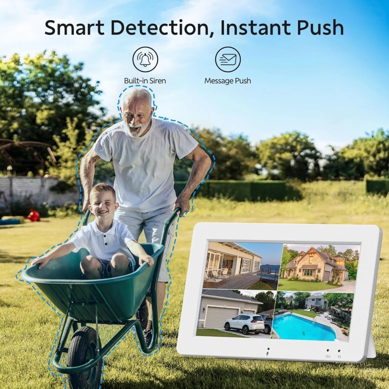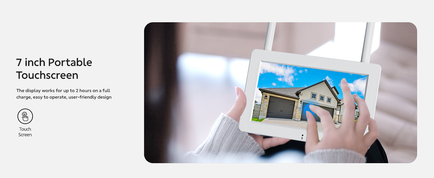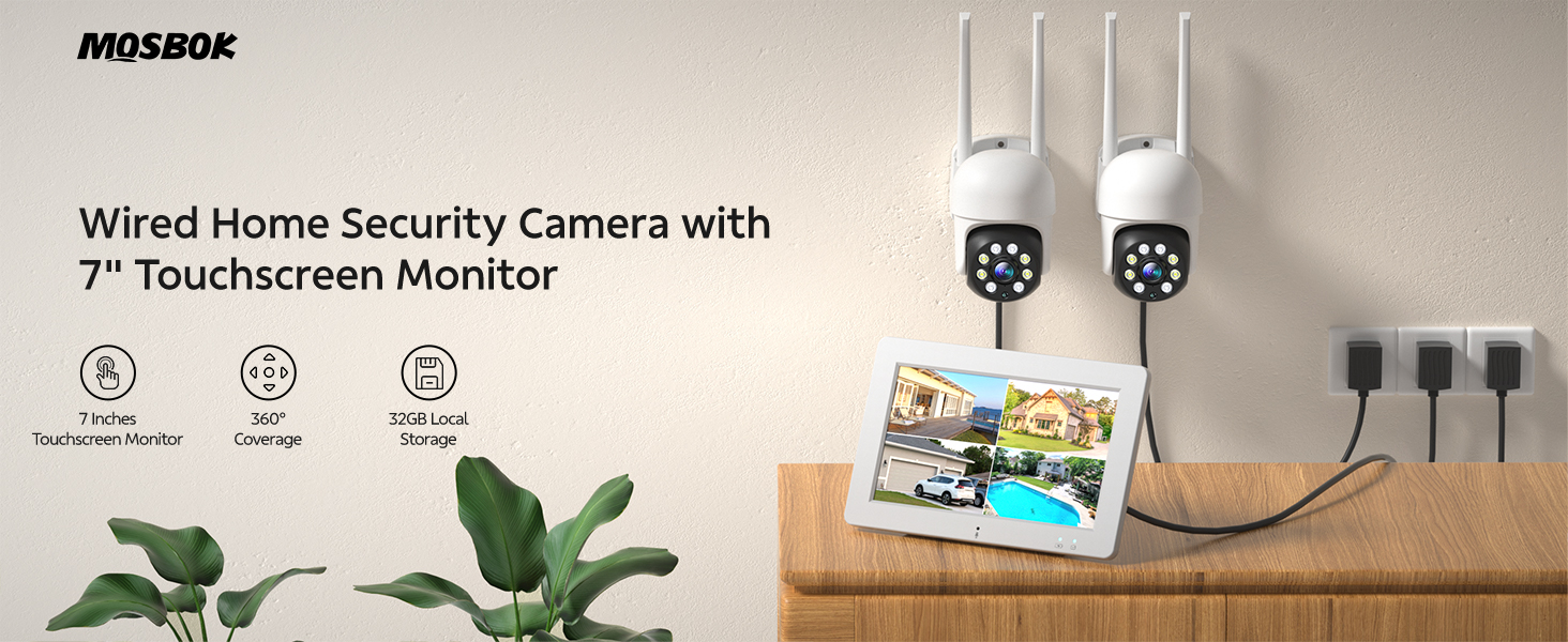 2-Cam-Kit &Security Cameras Outdoor Wireless, Plug-in Power, No Subscription, 2K Home Security Camera System with 7" Touchscreen Monitor & 32GB Local Storage, Pan-Tilt Wired Camera w/24/7 Recording