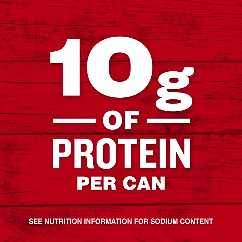 - 10 grams of Protein: Hearty soup that has vegetables and 10 g of protein in each can. See nutrition information for sodium content.