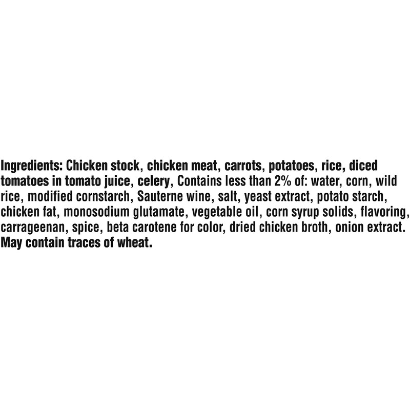 - Big Flavors: Chicken soup crafted with chicken meat without antibiotics, chunks of carrots, potatoes, celery, white rice and wild rice for a delicious and filling comfort food classic