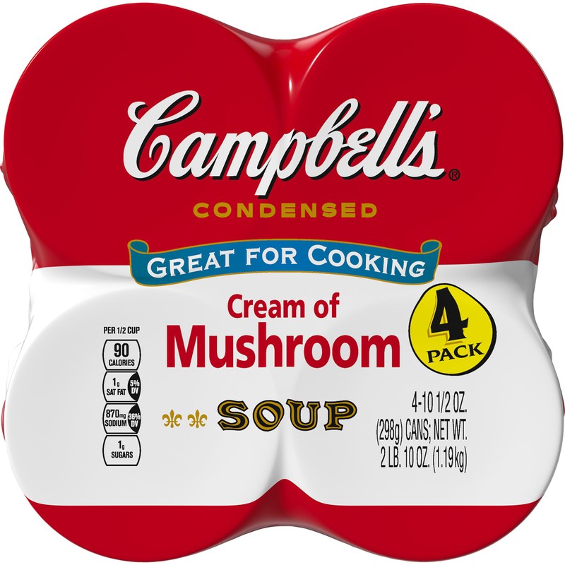 Campbell's Condensed Cream of Mushroom Soup is a smooth, rich combination of mushrooms and cream with garlic. Versatile and easy to use, expedite comforting from-scratch meals—Breakfast Frittatas, Beef Stroganoff, Green Bean Casserole and more!—by using our Cream of Mushroom Soup as your go-to ingredient. More than 1,000 recipe ideas available on CampbellsKitchen.com.