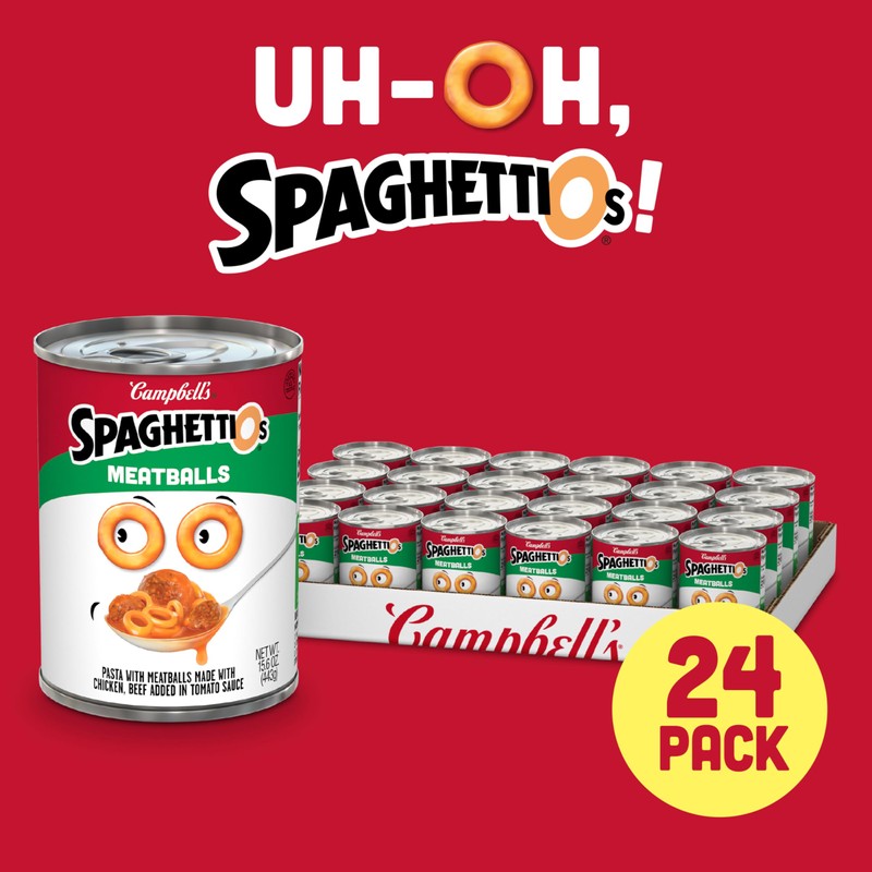 SpaghettiOs Canned Pasta with Meatballs, Healthy Snack for Kids and Adults, 15.6 OZ Can (Pack of 24)