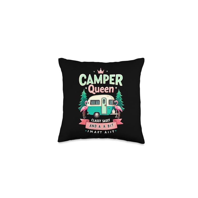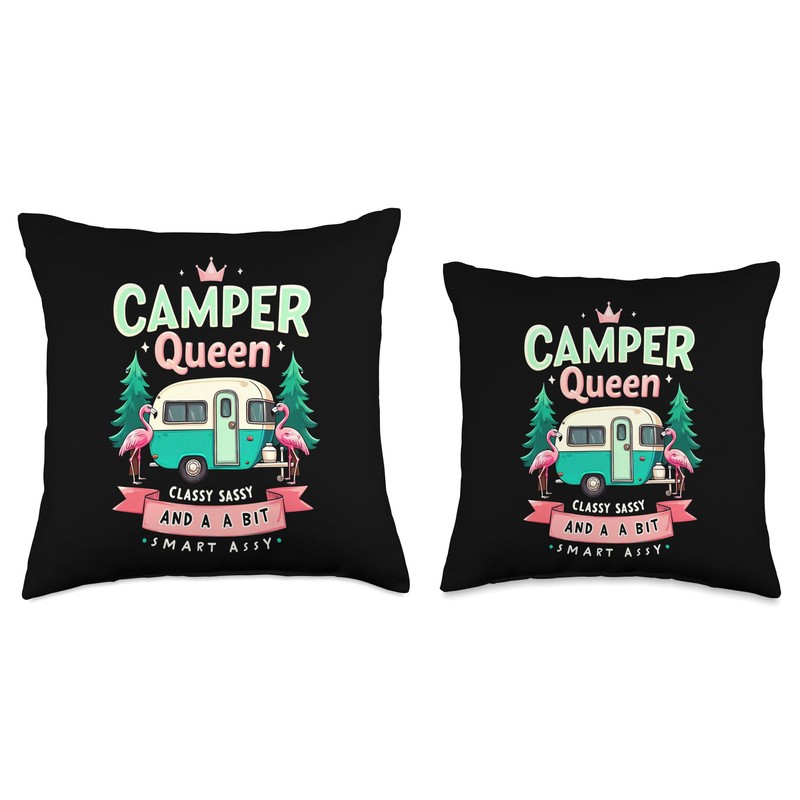 Camper Queen Classy Sassy Smart Funny Camping Girl Throw Pillow