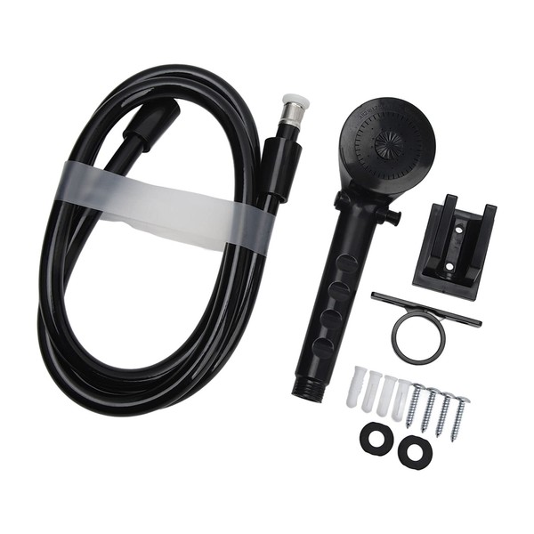 Camper Shower Head, RV Shower Set Durable Construction 1.5m Hose Water Saving Wide Application for Boat for Travel Trailer (Black)