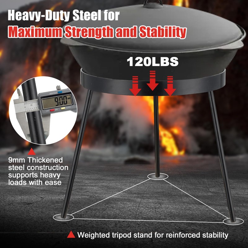 - High Heat Resistance - Withstands up to 1500°F thanks to a durable black powder coating, ensuring this dutch oven stand longevity even under extreme heat.