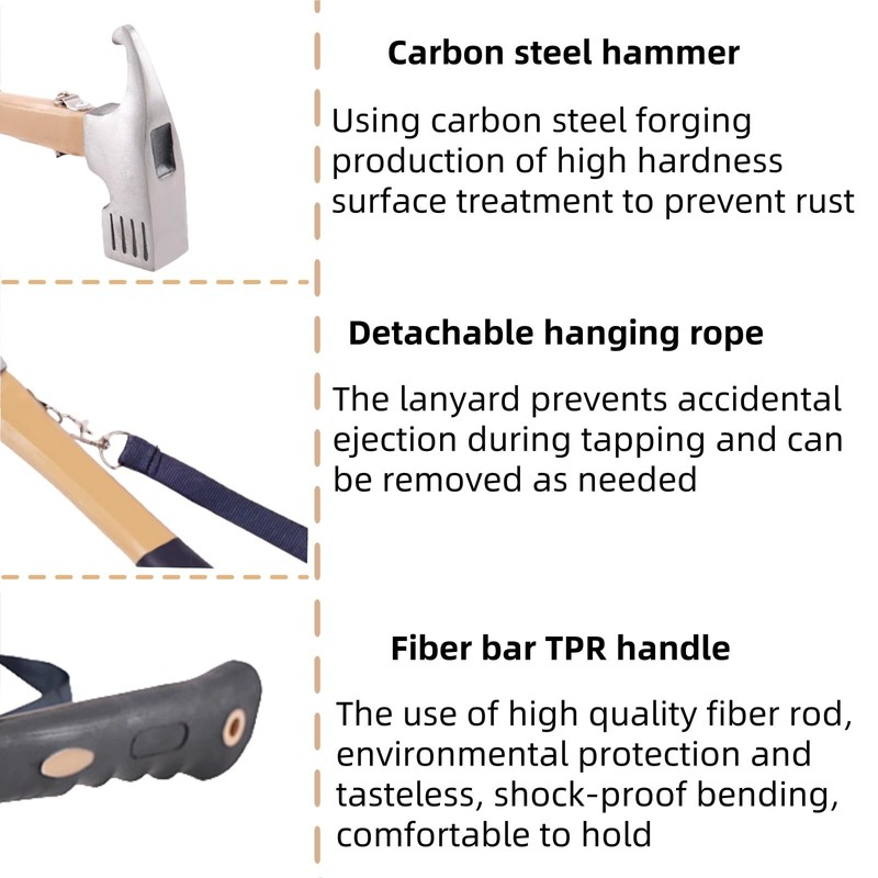 - 【Handle】: The Hammer uses a plastic rubber handle, which feels good in the hand and doesn't hurt to tap, and is equipped with a connecting cord to prevent your hand from slipping when you tap it.