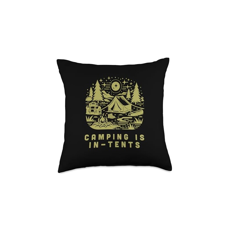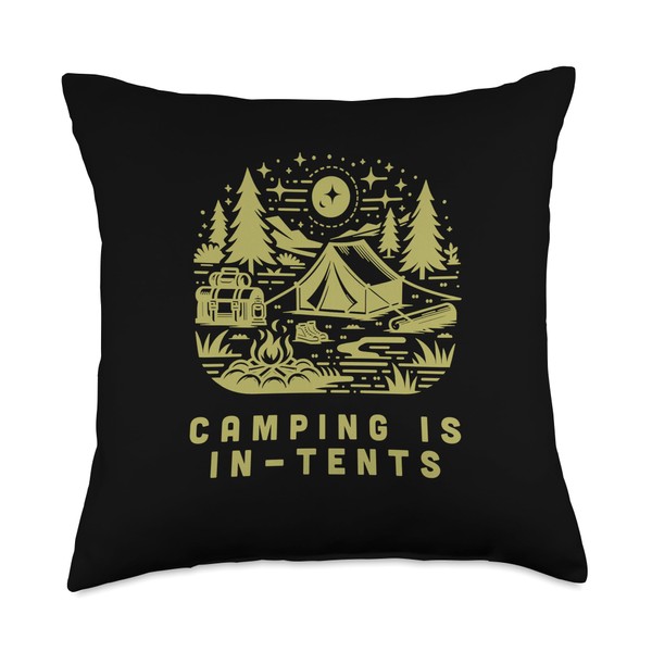 Camping is in-tents Nature Outdoors Backpacking Exploration Throw Pillow