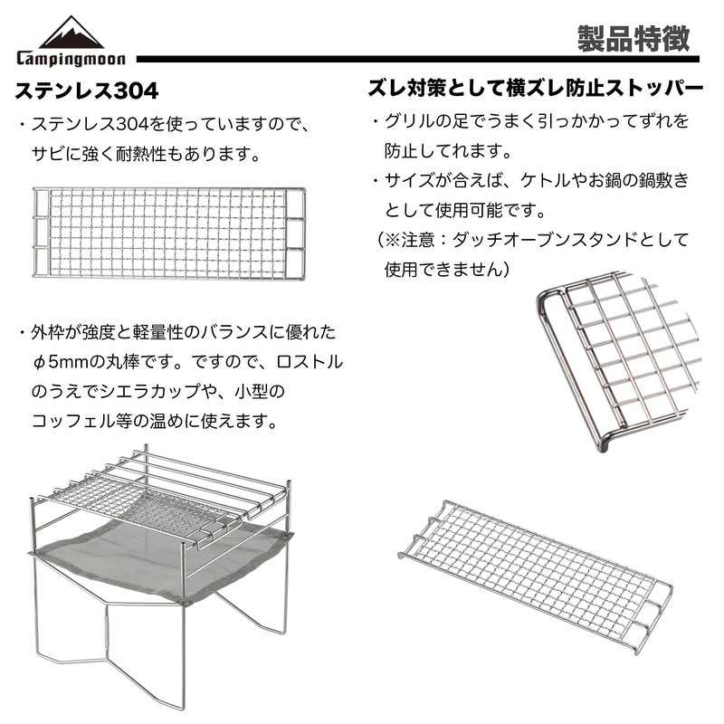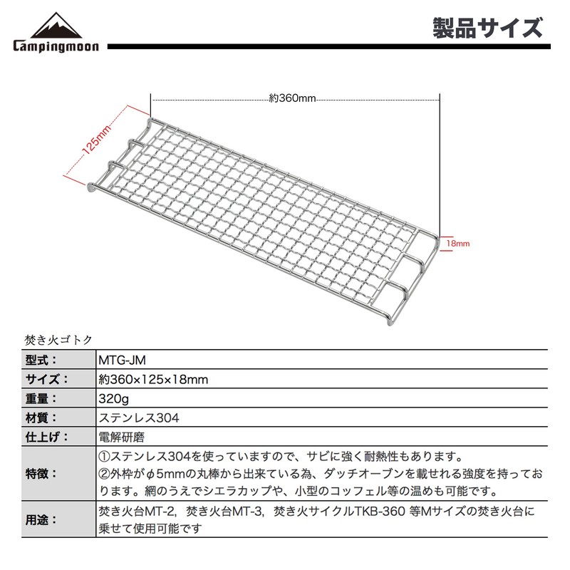 Camping Moon MTG-JM Bonfire Stand, Ami Type, Stainless Steel, Lost, Width 14.2 inches (360 mm)
