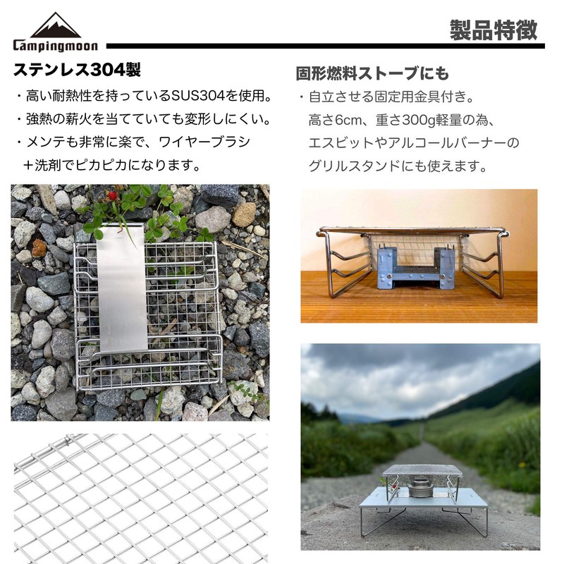 - Feature 2: Camping Moon world's smallest mini BBQ stove replacement net. It can also be used for compact size L pyramid grilles. Can also be used as a natural stove or alcohol burner if the size matches