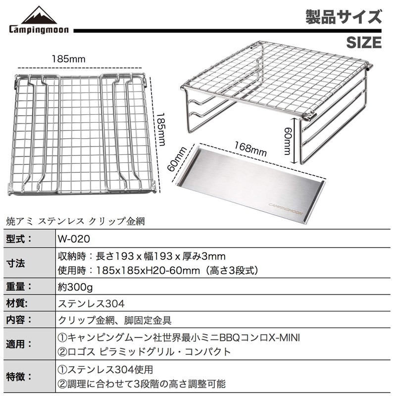 Camping Moon W-020 World's Smallest Replacement Net for Mini BBQ Stoves, Pyramid Grill, Stainless Steel, Clip Wire Mesh