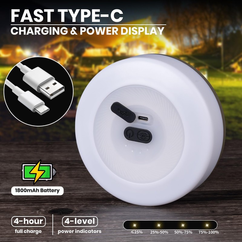 • USB Rechargeable: Built-in a 1800mAh rechargeable battery, 4 hours USB-C fast charging(cable included), the outdoor string lights can light up 2h - 21h when fully charged. 4 power indicators show the battery charge level, charging it timely.