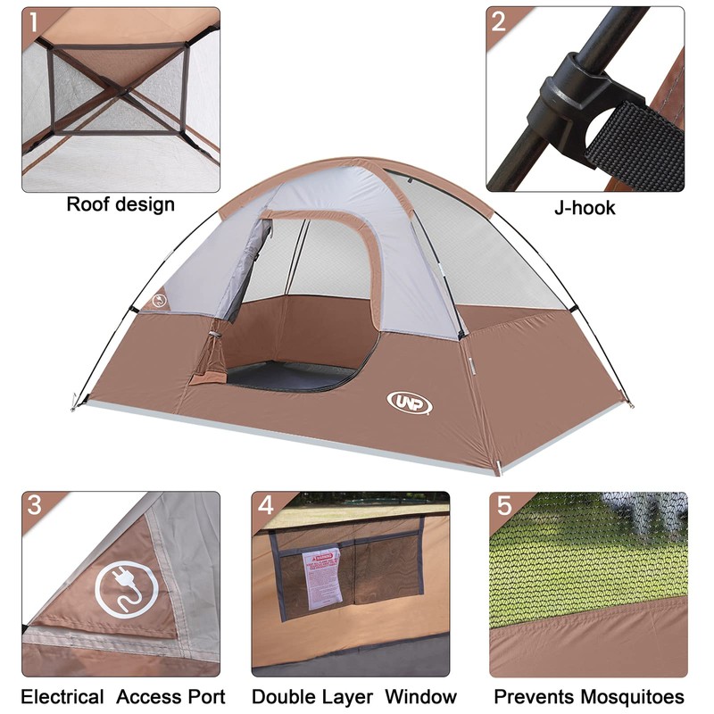 - Windproof & Rainproof: The camping tent is made of stronger tear-resistant polyester.It come with a removable rainfly and two zippers designed for keeping the rain outside the tent. The ropes of tent and piles ensure safety and stability.
