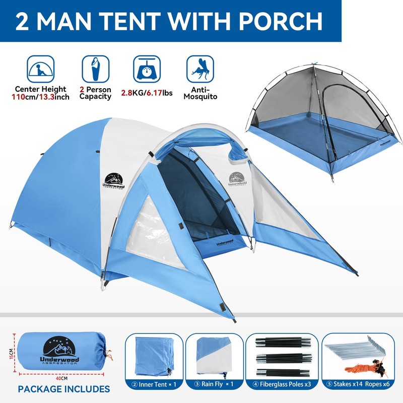 Camping Tent 2 Person with Porch, Lightweight Backpacking Tent 2 Person, Easy Setup Waterproof Two Person Camping Gear for Outdoor Hiking Hunting Mountaineering by Underwood Aggregator