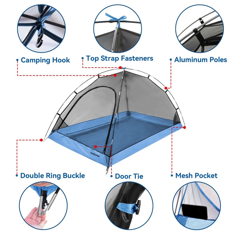 - 【SUPERIOR VENTILATION】 The inner tent adopts a mesh design, featuring strong ventilation and protection against bugs. Meanwhile, there is a ventilation window at the rear of the two man tent to ensure ventilation is maintained when the tent is closed. This excellent ventilation system of the backpacking tent 2 person reduces the build-up of condensation and keeps the interior fresh, ensuring a comfortable sleeping environment