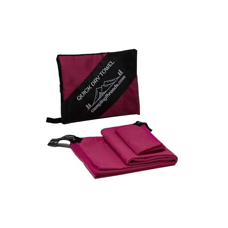 Camping Threads Quick Dry Camping Towel Set - Includes XL Body Towel and Washcloth in Zip-Up Storage Bag (Rose Pink)