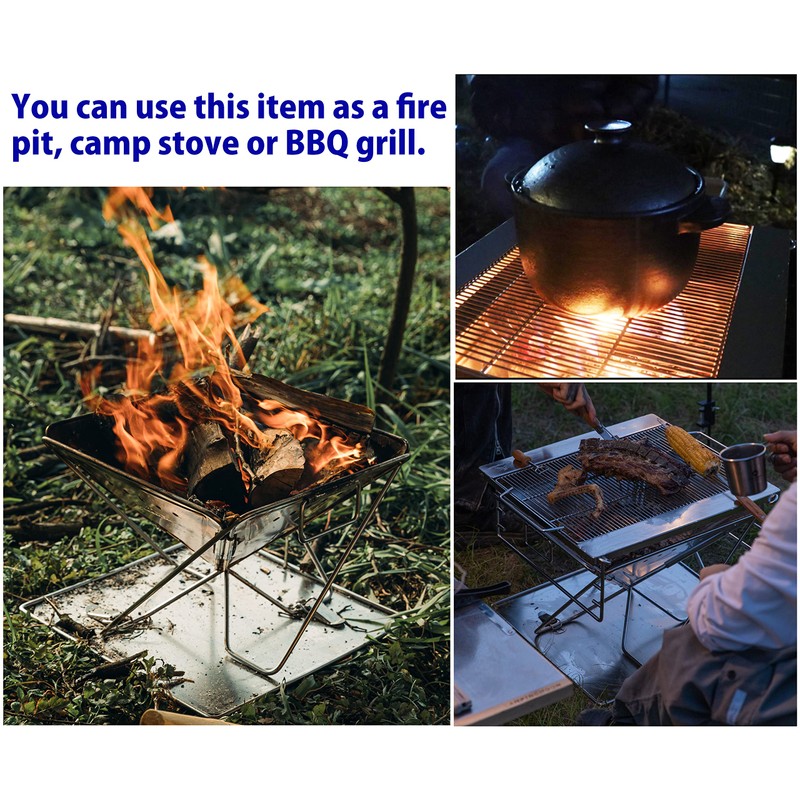 - ★Large size foldable camping grill, recommended for about 4-5 people★Portable fire pit & wood burning camping grill/stove, easy to assemble. Very convenient for barbecue, camping, beach, RV camping and other outdoor occasions.