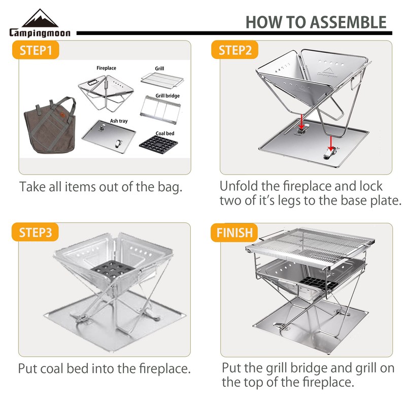 - *OUTDOOR USE ONLY* ①It can be used as a fire pit, camp stove or BBQ grill as you need. Sturdy and long life with a thick stainless steel frame. ②Three levels adjustable height of the grill, so you can control the heat for cooking. ③Package include: 1 * Fire Pit BBQ Grill MT-045; 1 * Canvas Carrying Bag