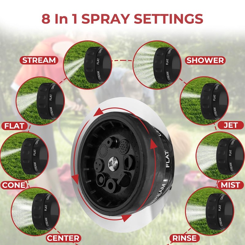 - 8-in-1 Spray Modes: include Jet, Flat, Shower, and Mist, adjust the spray pattern, accorde to the water pressure and water flow demand, idea for dog washing, horse washing, car washing, garden cleaning or even water plants.