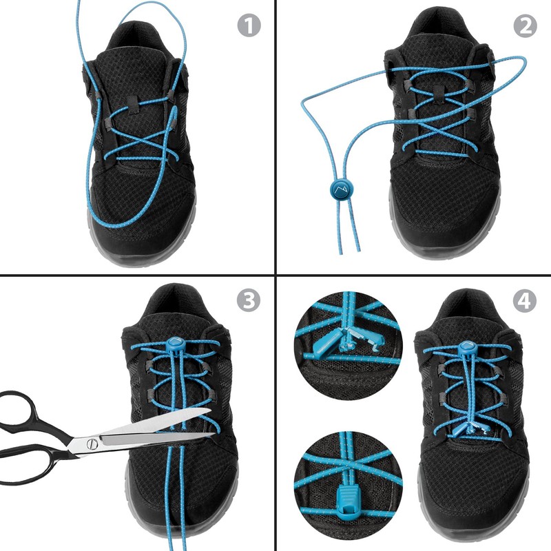 Made of high-quality elastic bands with a clip made of stainless steel in the lock. They are very comfortable and durable. 120 cm long, easy to attach without any aids. One size fits all. Simply thread it like normal laces, tighten with the help of the quick-release fastener and shorten it as needed.