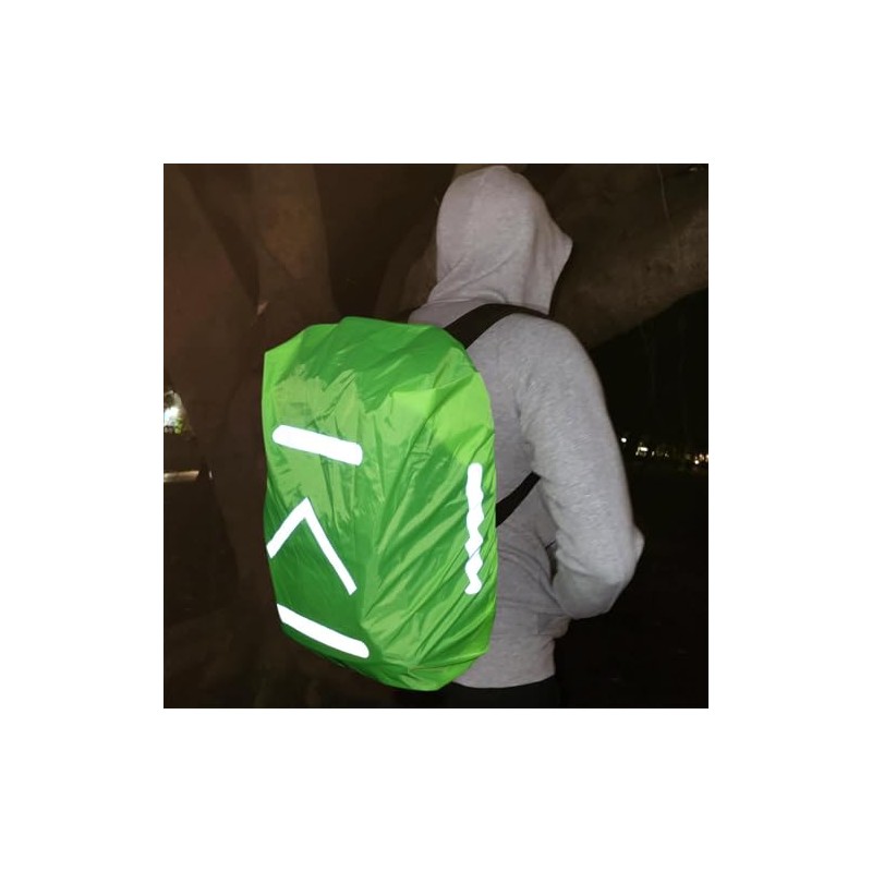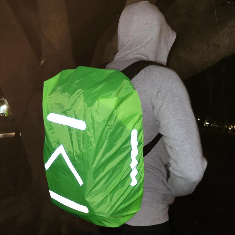 - Our backpack cover waterproof is perfect for outdoor use in lowlight and dark settings, great for hiking, horse riding, cycling, motorbiking and other outdoor activities where you need to be noticed or located. The bike rucksack cover is bright neon green and has 5 x reflective strips, 2 on the side and 3 on the main back surface to increase visibility.