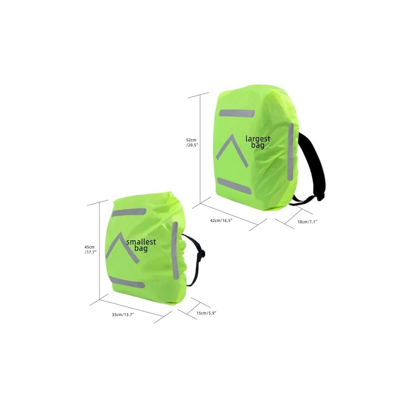 Our reflective backpack cover can be used every day for commuting, walking, exercise, travelling and backpacking. The high visibility backpack cover can be easily folded and stored in the pack, bag or pocket when not in use. The backpack rain cover waterproof can easily be wiped cleaned with a damp cloth.