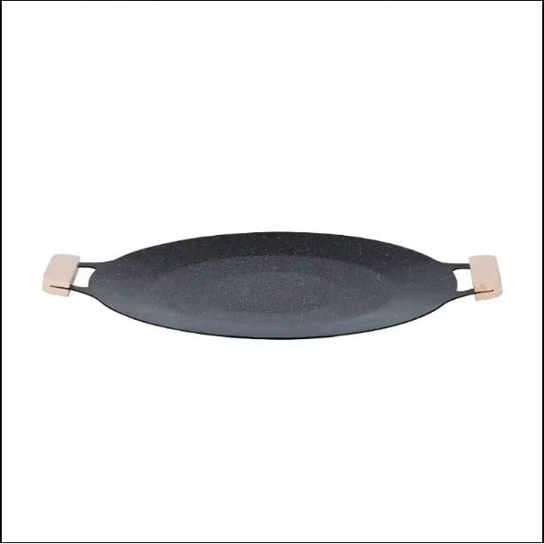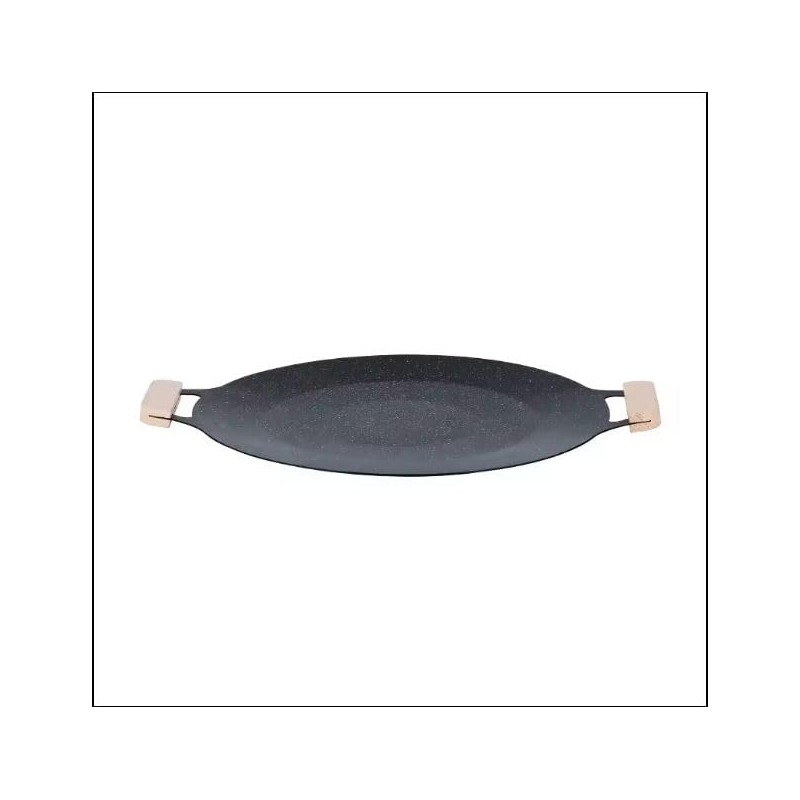 - The pan features a wide, ergonomic design with excellent heat conductivity for even cooking. Its scratch-resistant, ridged surface facilitates effortless food flipping while ensuring optimal heat distribution.