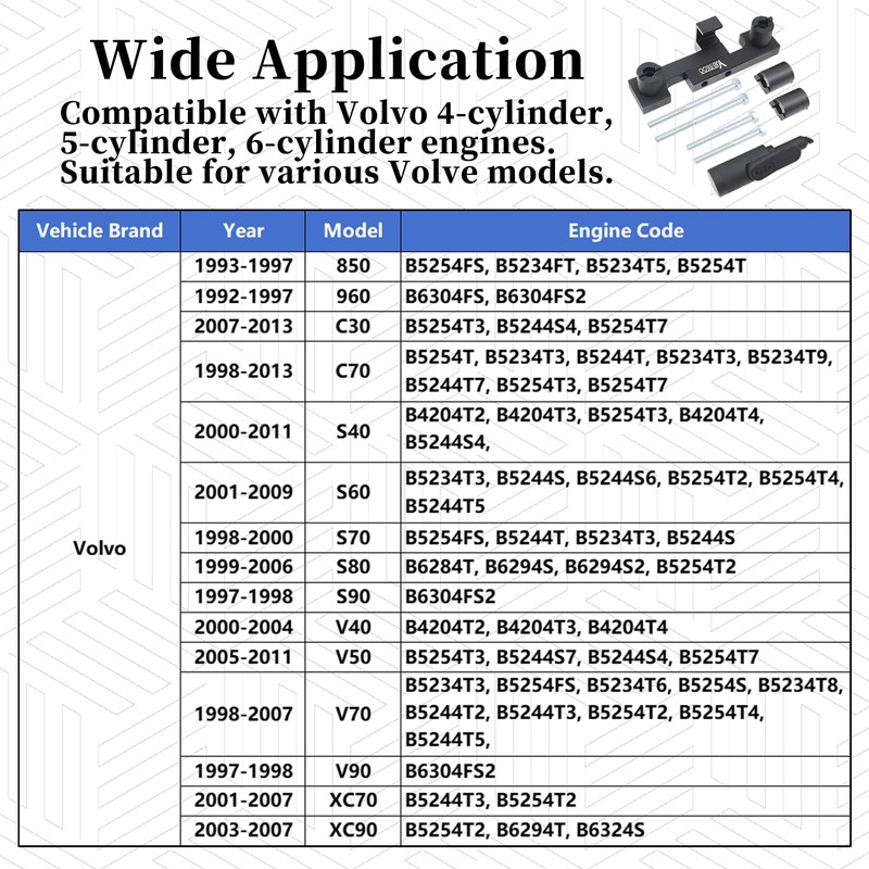 Yuesstloo Camshaft & Crankshaft Timing Locking Tool Kit, Compatible with Volvo S40 S60 XC90 V70 S80 2.0 2.3 2.4 2.5 2.8 2.9T, 4 5 6 Cylinder Engine, Replace 9995452 9995451, with Case & Gloves