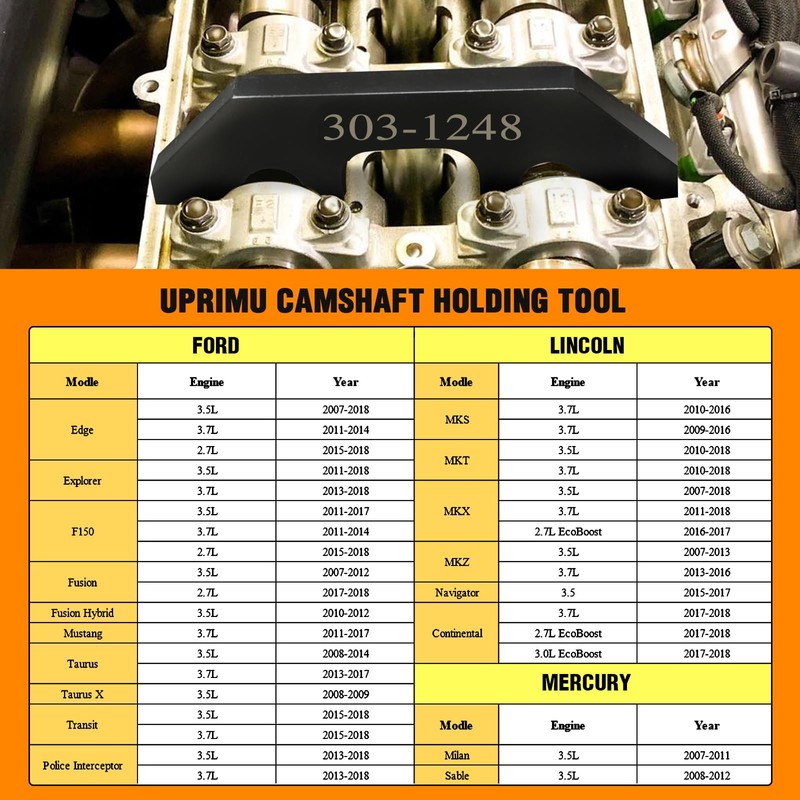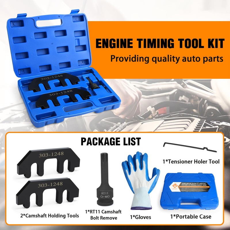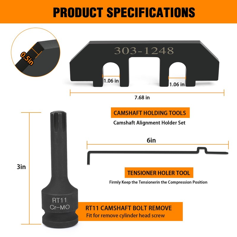 Uprimu Camshaft Holding Tool Kit with Tension Tool, Timing Alignment Holder Tool Compatible with 303-1248 Ford 3.5L & 3.7L 4V, Timing Tool Kit with Cylinder Head Screw Removal Socket